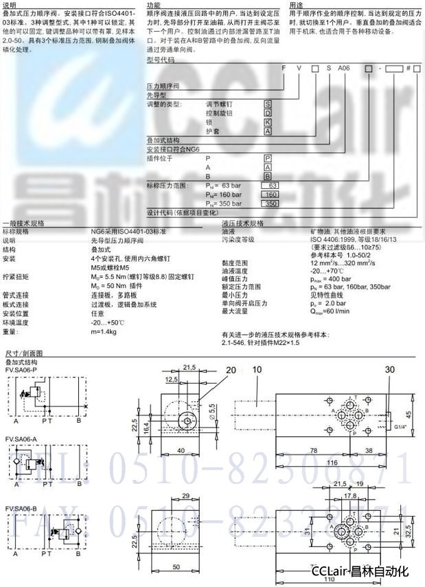 FV.SA06-P,F(xiàn)V.SA06-A,F(xiàn)V.SA06-B,先導(dǎo)式壓力順序閥疊加式結(jié)構(gòu)
