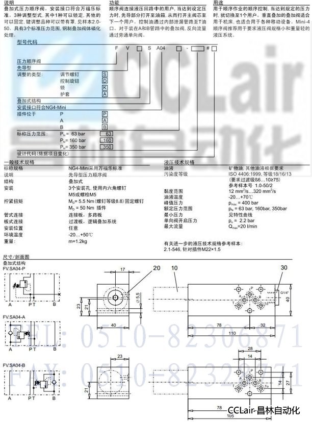 FV.SA04-P,F(xiàn)V.SA04-A,F(xiàn)V.SA04-B,先導(dǎo)式壓力順序閥疊加式結(jié)構(gòu)