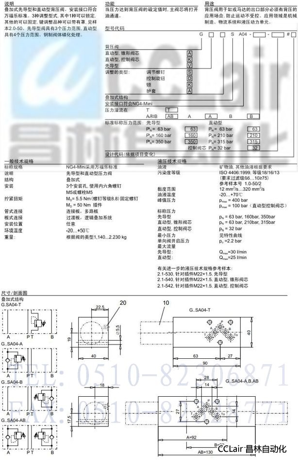 G.SA04-T,G.SA04-A,G.SA04-B,G.SA04-AB,先導(dǎo)式/直動(dòng)式背壓閥疊加式結(jié)構(gòu)