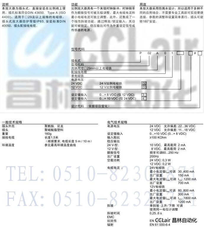 P02A01D23,P02A01D33,P02A01D24,P02A01D34,比例放大器