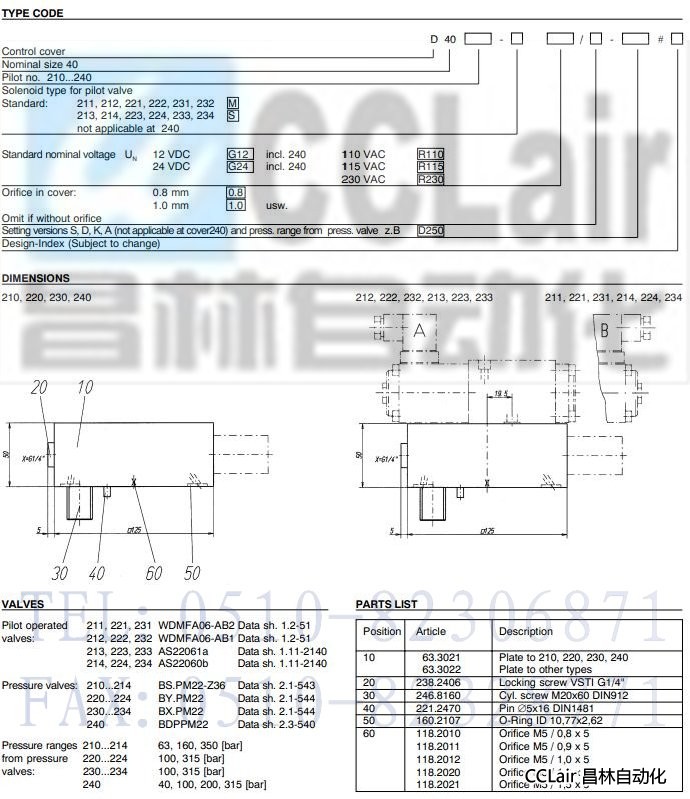 D40222M,D40224S,帶壓力功能的2位2通插裝閥