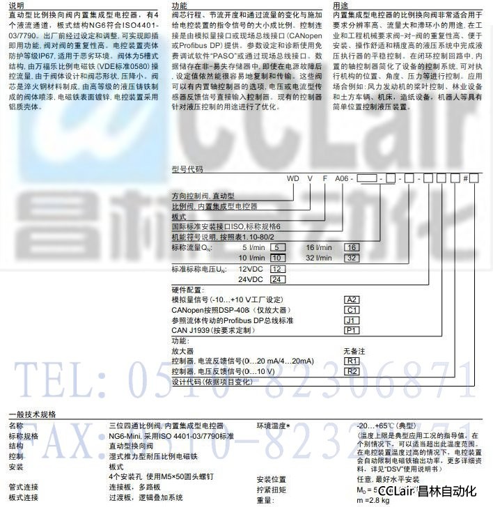 WDVFA06-ACB,WDVFA06-ADB,比例換向閥(內(nèi)置集成型電控器)