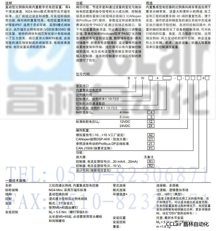 BVW4x4,BVWS4D41,BVWV4D42,比例換向閥(內(nèi)置集成型電控器)