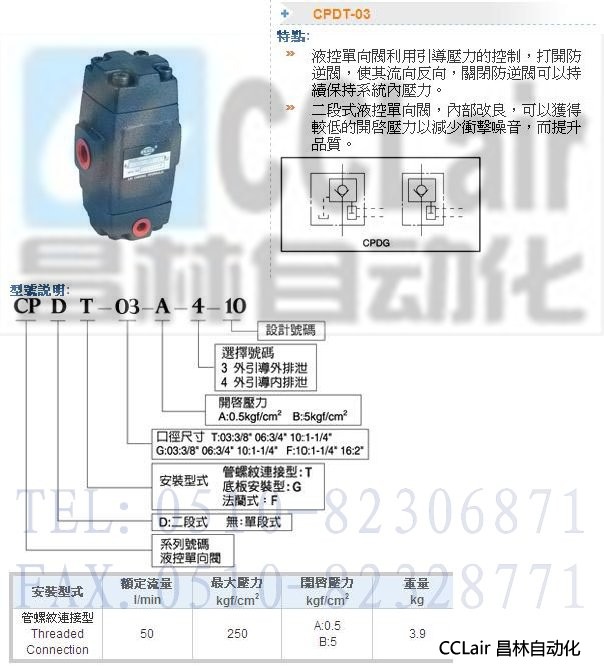CPDT-03-A-4-10,CPDT-03-A-3-10,液控單向閥