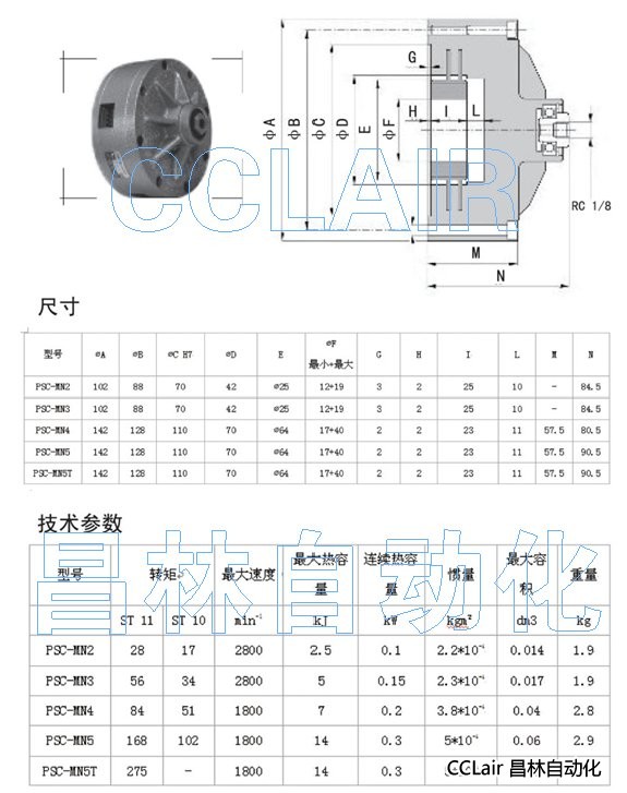 PSC-MN2,PSC-MN3,PSC-MN4,PSC-MN5,PSC-MN5T,空壓多片式離合器