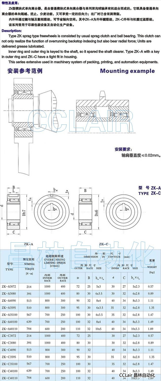 ZK-A3072,ZK-A3080,ZK-A4090,ZK-A3595,ZK-A35100,ZK-A40100,ZK-A40110, 單向離合器