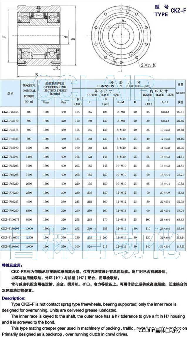 CKZ-F25165,CKZ-F30170,CKZ-F35175,CKZ-F40185,CKZ-F50190,CKZ-F55195,單向離合器