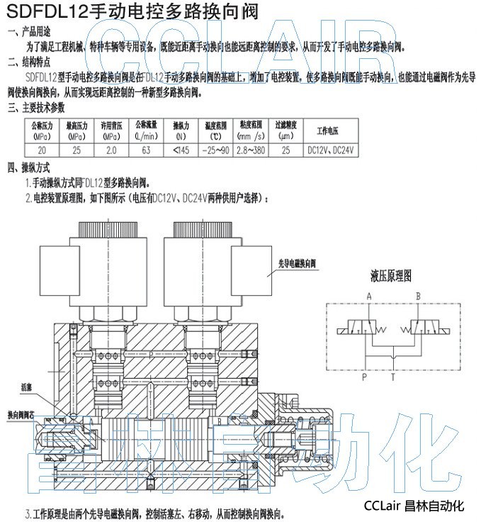 SDFDL12-5H/E24,手動電控多路換向閥