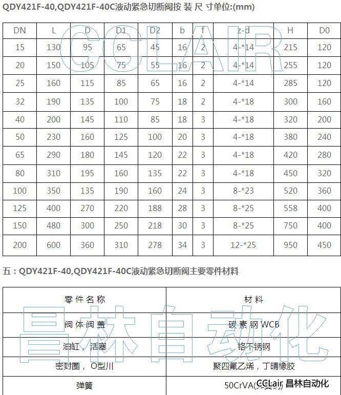 QDY421F-16-DN15,QDY421F-25-DN15,QDY421F-40-DN15,液動緊急切斷閥
