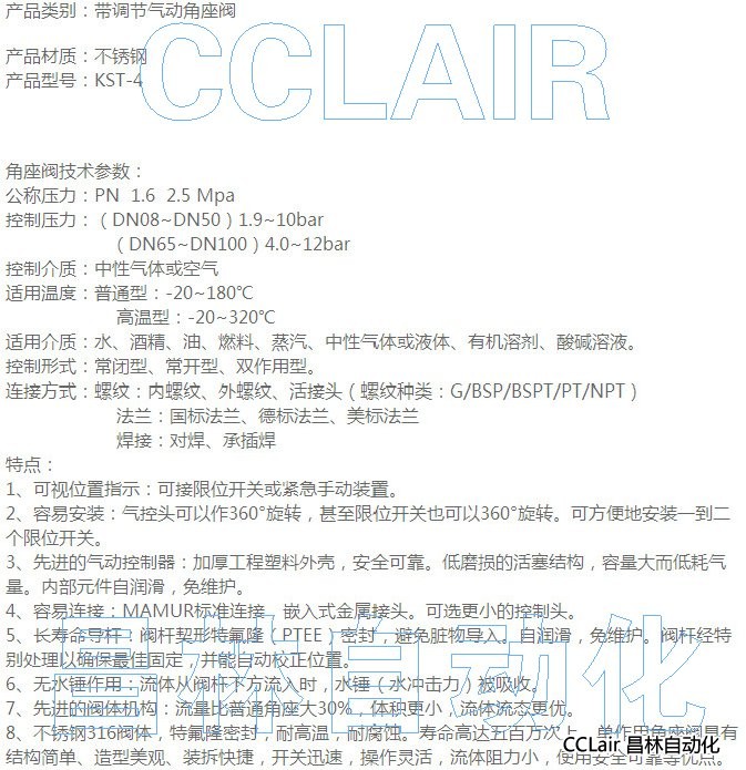 KST-4,2000Y型帶調節(jié)氣動角座閥