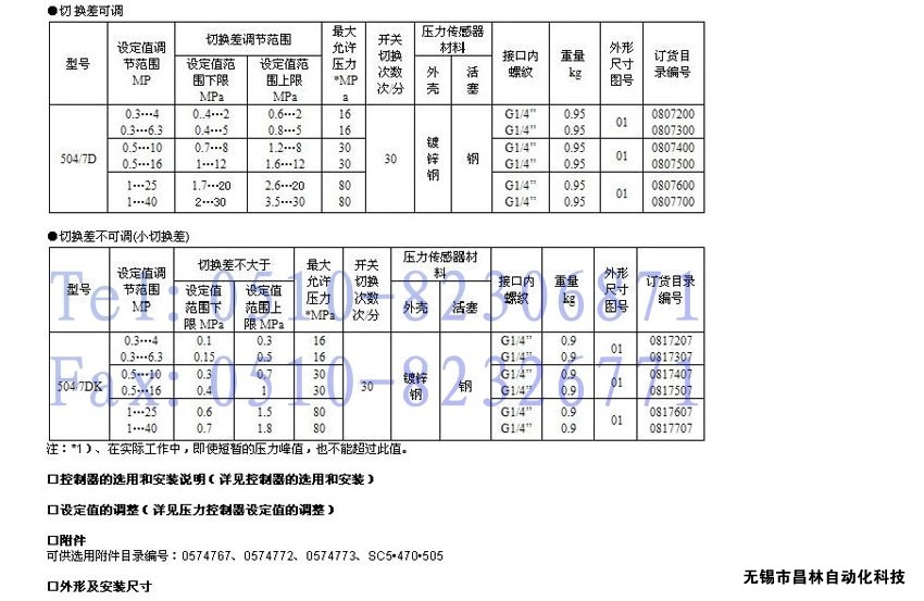 504/7D壓力控制器,