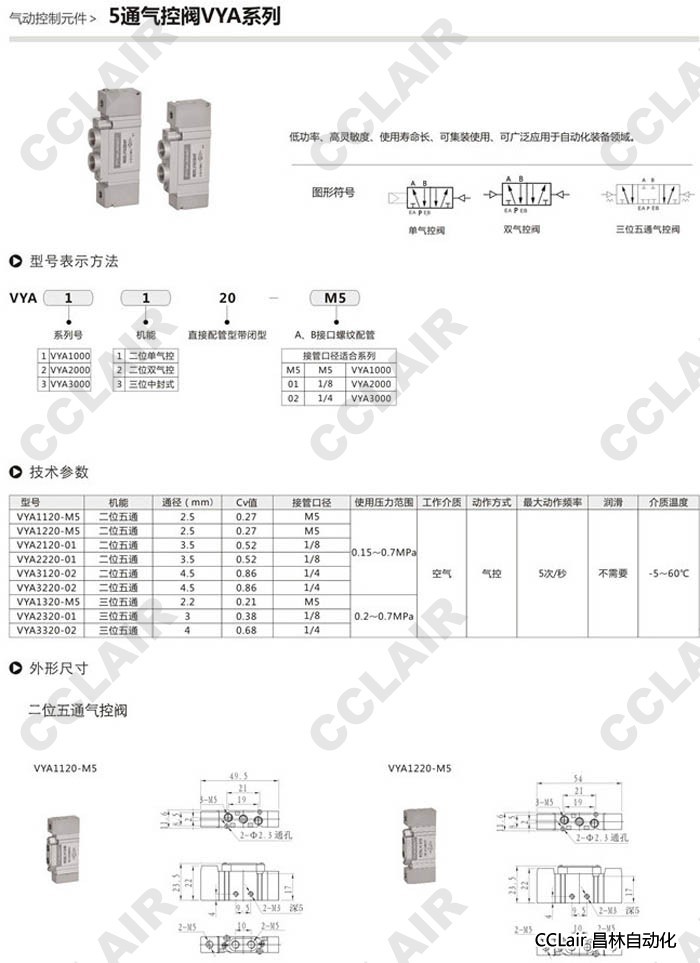 VYA1120-M5,VYA1220-M5,VYA1320-M5,VYA2120-M5,VYA2220-M5,VYA2320-M5,5通氣控閥