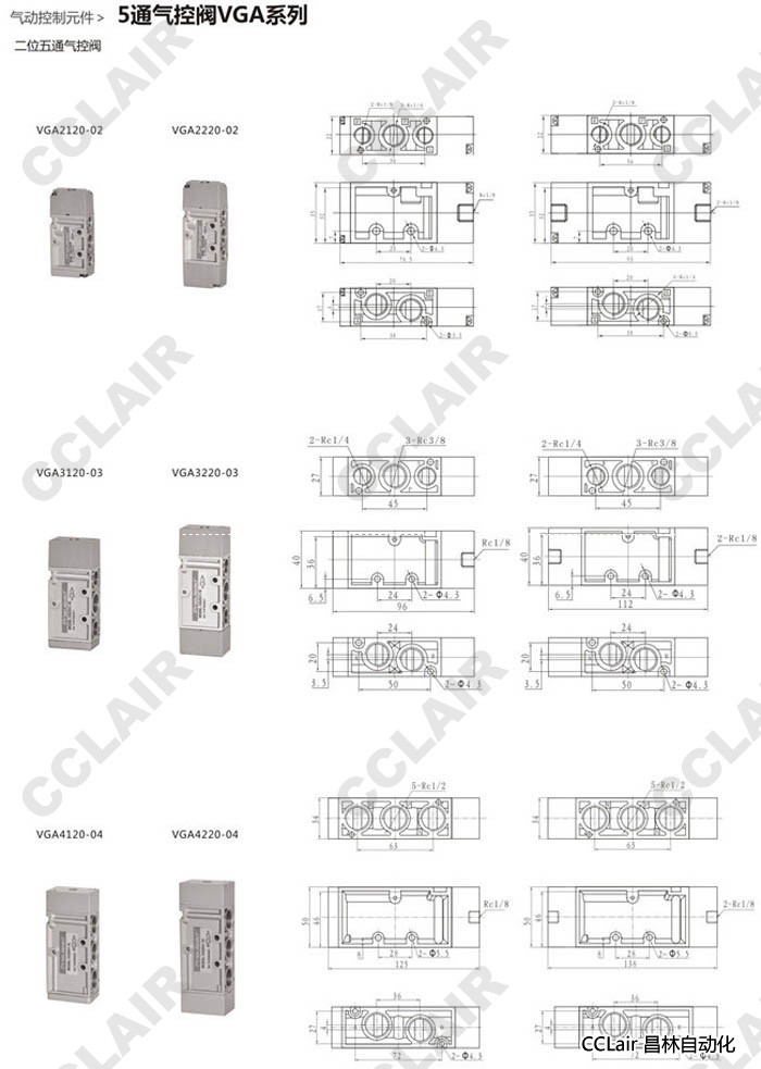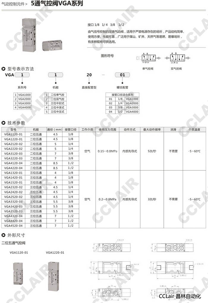 VGA3320-03,VGA3420-03,VGA3520-03,VGA4320-04,VGA4420-04,VGA4520-04,5通氣控閥