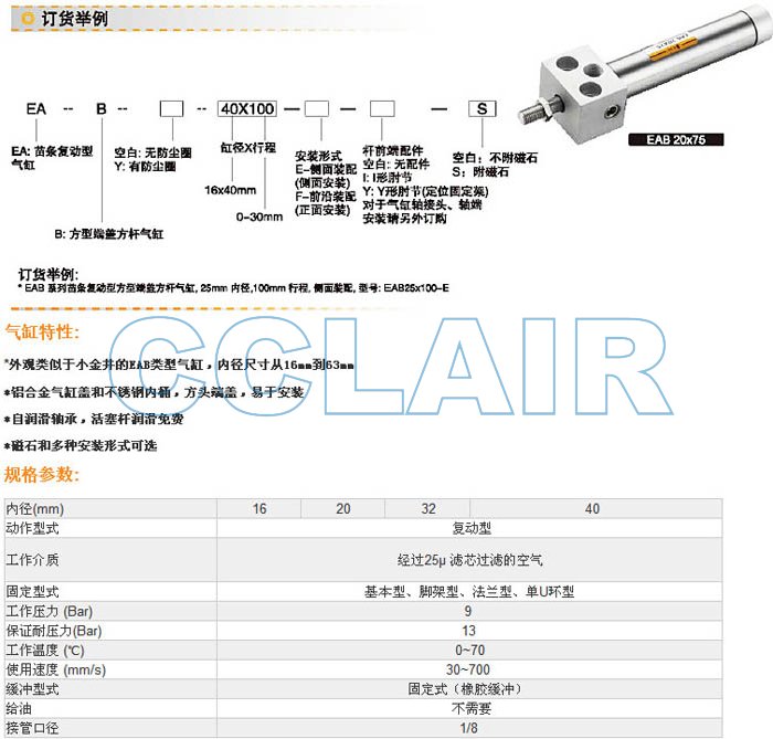 EAB16X100,EABY16X100,EAB20X100,EABY32X100,EAB40X100,EABY40X100,迷你氣缸