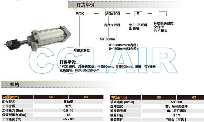 PCK-50X100-S,PCK-63X100-S,PCK-50X550-S,PCK-63X550-S,焊接夾緊缸