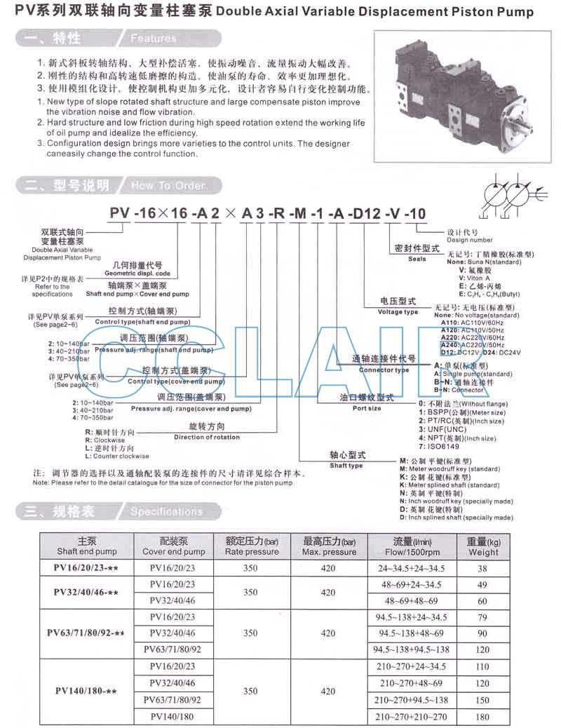 PV-32×40,PV-63×71,PV-140×92,PV-180×92,PV-16×16-A2×A3-R-M-1-A-D12-V-10,雙聯(lián)軸向變量柱塞泵