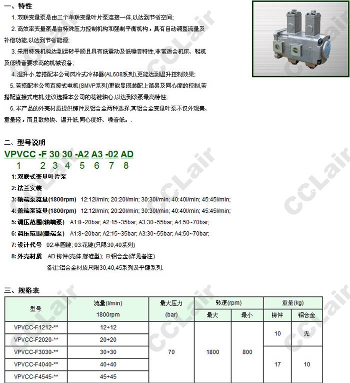 VPVCC-F1245-A1A1-02AD,VPVCC-F2045-A1A1-02AD,VPVCC-F3045-A1A1-02AD,VPVCC-F4045-A1A1-02AD,