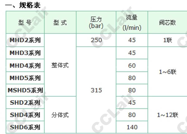 MHD2,MHD3,MHD4,MHD5,MSHD5,SHD2,SHD4,SHD6,工程液壓多路閥