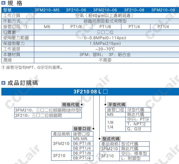 3FM210-M5-L-T,3FM210-06-L-T,3FM210-08-L-T,3FM210-M5-L-G,3FM210-06-L-G,3FM210-08-L-G,腳踏閥