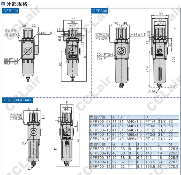 GFR300-08-A-L-NC3-W,臺灣亞德客(AirTAC),GFR300-10-A-L-NC3-W,GFR300-15-A-L-NC3-W,