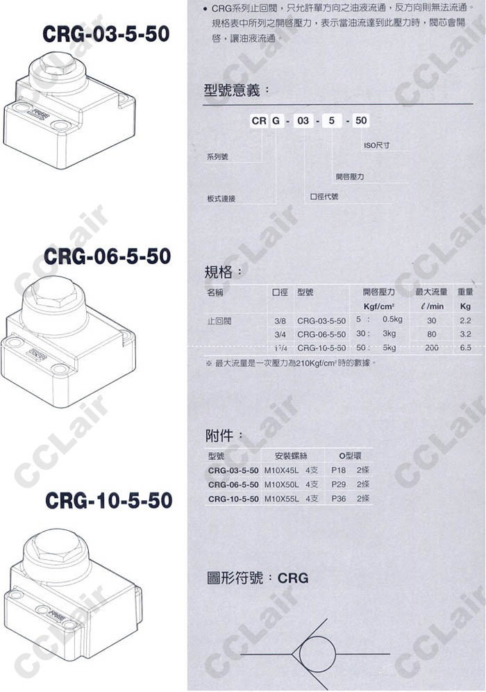 CRG-03-5-50,CRG-06-5-50,CRG-10-5-50,止回閥