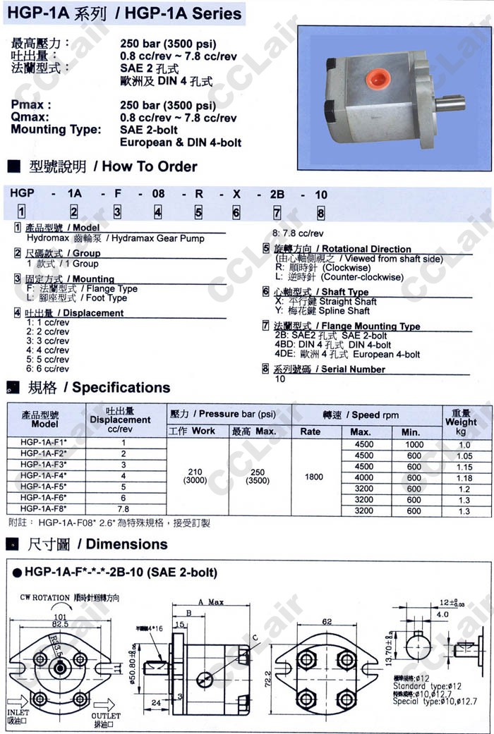 HGP-1A-F1R,HGP-1A-L2R,HGP-1A-F3L,HGP-1A-F4L,HGP-1A-F5R,HGP-1A-F8R-X-2B-10,HGP-1A-L6R,齒輪泵