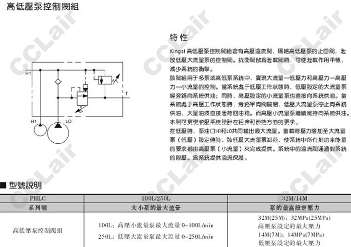 PHLC-100L-32M,PHLC-250L-32M,PHLC-100L-14M,PHLC-250L-14M,高低壓泵控制閥組 |