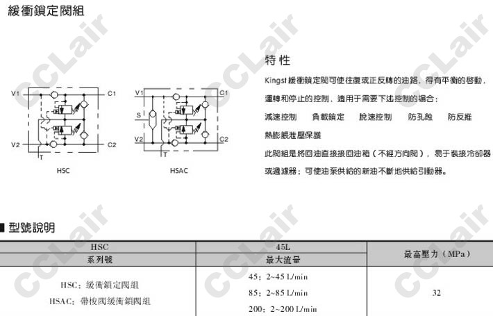 HSC-45-32,HSC-85-32,HSC-200-32,HSAC-45-32,HSAC-85-32,HSAC-200-32,緩沖鎖定閥組 |