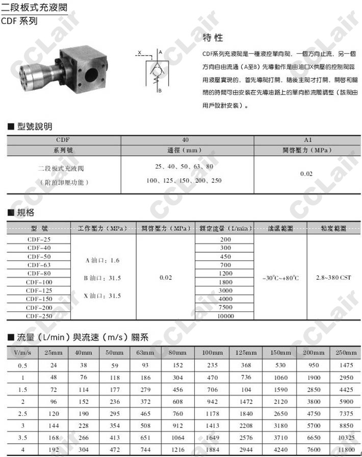 CDF-25,CDF-40,CDF-50,CDF-63,CDF-80,CDF-100,CDF-125,CDF-150,CDF-200,CDF-250,二段板式充液閥