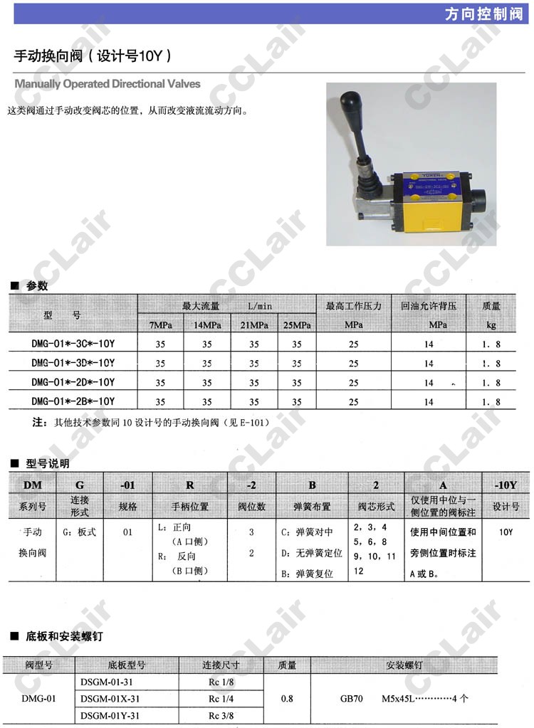 DMG-01L,DMG-01R,DMG-01L-3C2A-10Y,DMG-01R-3C2B-10Y,手動換向閥