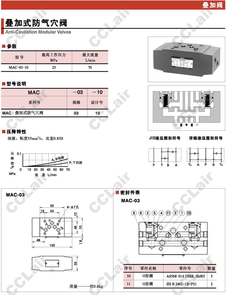 MAC-03-10,疊加式防氣穴閥,YUCIYUKEN榆次油研