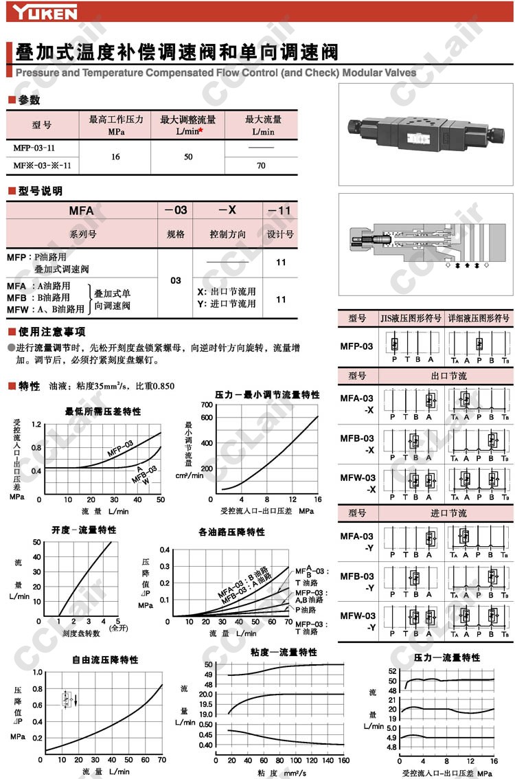 MFA-03-X-11,MFA-03-Y-11,MFB-03-X-11,MFB-03-Y-11,MFW-03-X-11,MFW-03-Y-11,疊加式單向調(diào)速閥,YUCIYUKEN榆次油研
