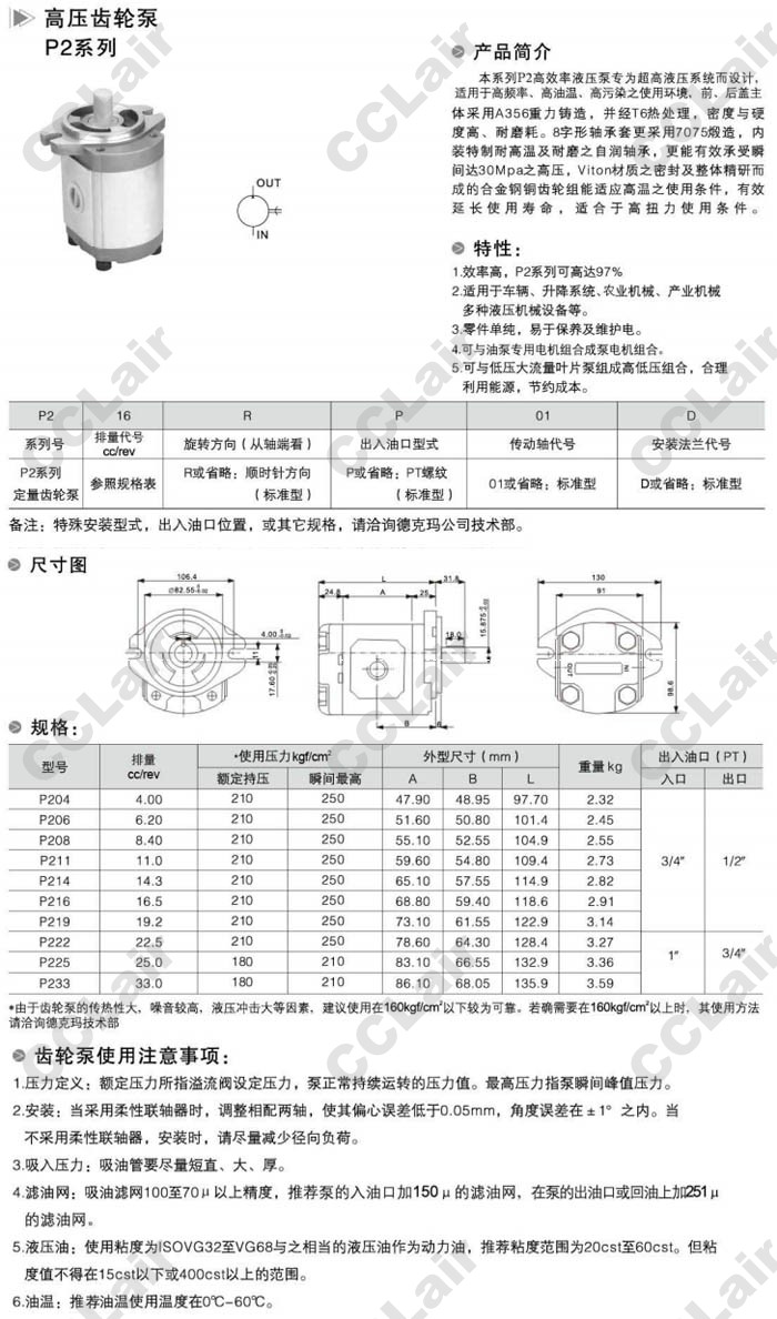 P204,P206,P208,P211,P214,P216,P219,P222,P225,P233,P204RP01D,P206RP01D,高壓齒輪泵 |