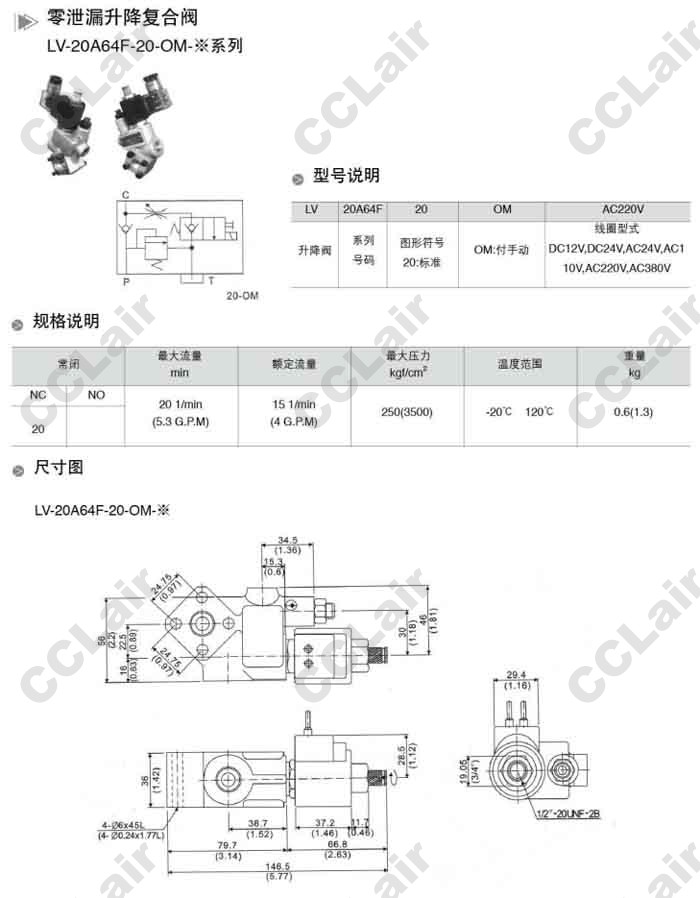 LV-20A64F-20,LV-20A64F-20-OM-DC12V,LV-20A64F-20-OM-DC24V,LV-20A64F-20-OM-AC24V,零泄漏升降復合閥 |