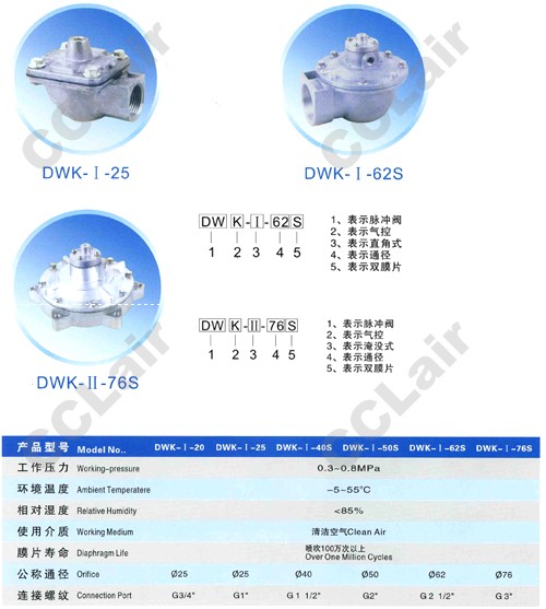 DWK-I-20,DWK-I-25,DWK-I-40S,DWK-I-50S,DWK-I-62S,DWK-I-76S,直角式氣控脈沖閥 |