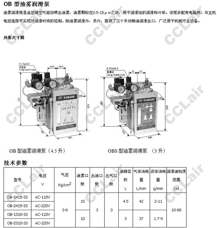 OB-1415-33,OB-2415-33,OB-1310-33,OB-2310-33,油霧潤滑泵