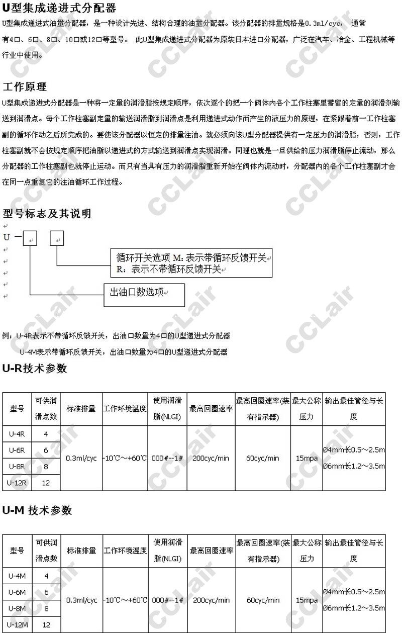 U-4R,U-6R,U-8R,U-12R,U-4M,U-6M,U-8M,U-12M,集成遞進式分配器