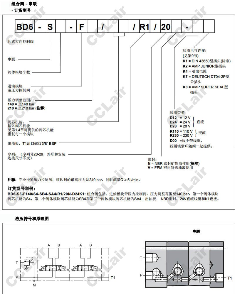 BD6-S2-F140/S1-S1/R1/20N-D12K1,BD6-S3-F140/S3-S1-S1/R1/20N-D12K1,BD6-S5-F210/S1-S1-S1-S3-SA1/R1/20N-D12K1,片式方向控制閥