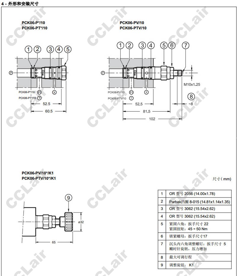 PCK06-PV/10N,PCK06-P4/10N,PCK06-PV/10V,PCK06-P4/10V,PCK06-PTV/10N,PCK06-PT8/10V,PCK06-PT8/10N,壓力補償器