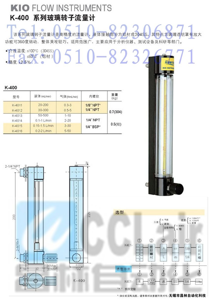 K-4011,K-4012,K-4013玻璃轉子流量計