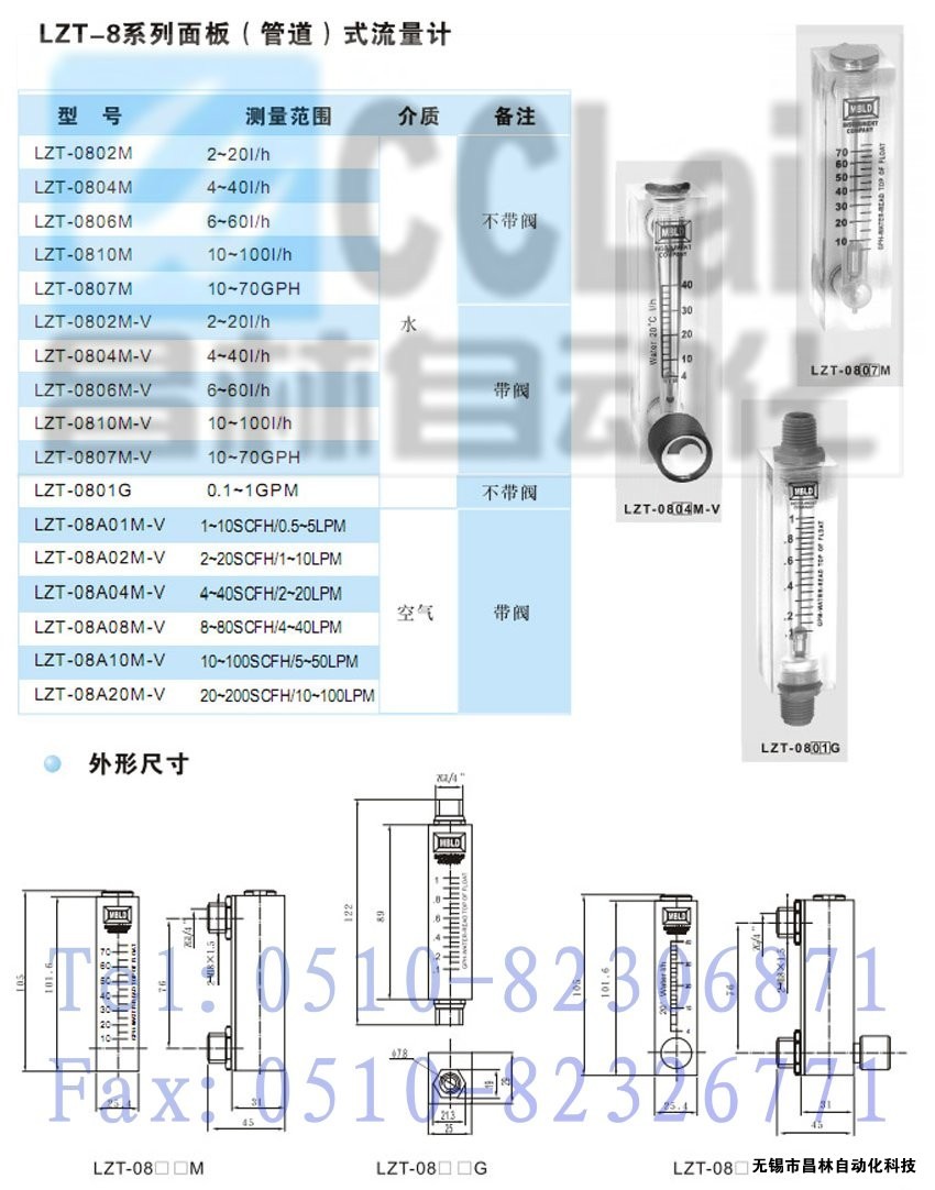LZT-0802M,LZT-0804M,LZT-0806M面板流量計(jì)