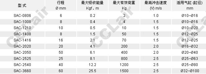 氣立可(chelic),SAC-0806,SAC-1008,SAC-1210,SAC-1408,SAC-1416,SAC-2020,SAC-3660,油壓緩沖器