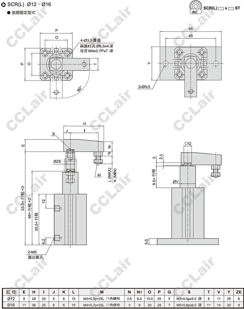 氣立可(chelic),SCR12,SCR16,SCR20,SCR25,SCR32,SCR40,SCL20,SCL25,SCL32,SCL40,SCL50,SCL63,旋轉(zhuǎn)夾持氣缸