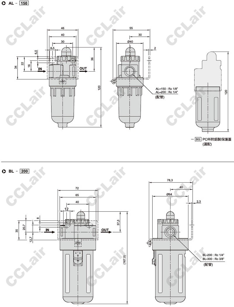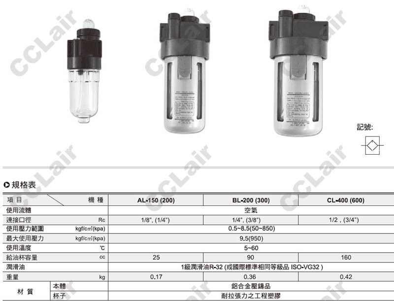 氣立可(chelic),AL-150,AL-200,BL-200,BL-300,CL-400,CL-600,AL-150-G-BG-A,給油器