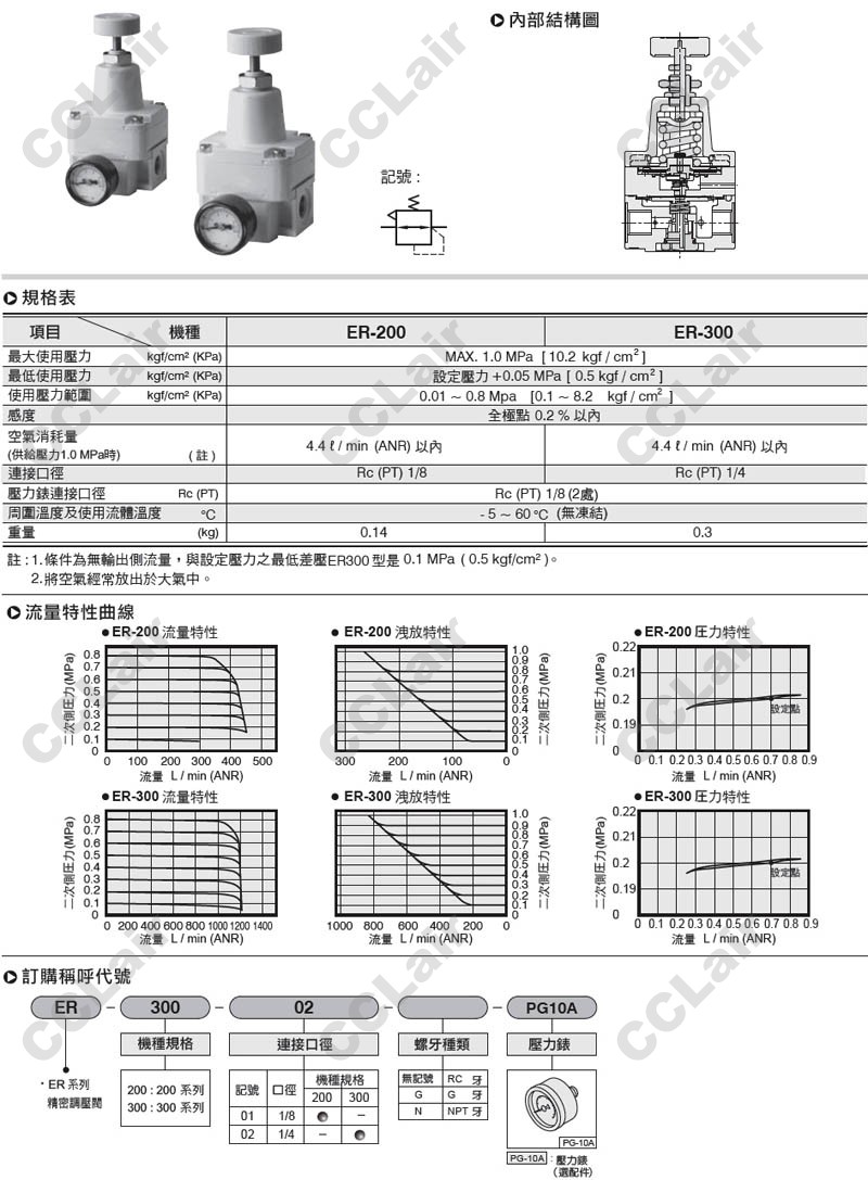 氣立可(chelic),ER-200-01-G-PG10A,ER-200-01-PG10A,ER-300-02-G-PG10A,ER-300-02-N-PG10A,精密調(diào)壓閥