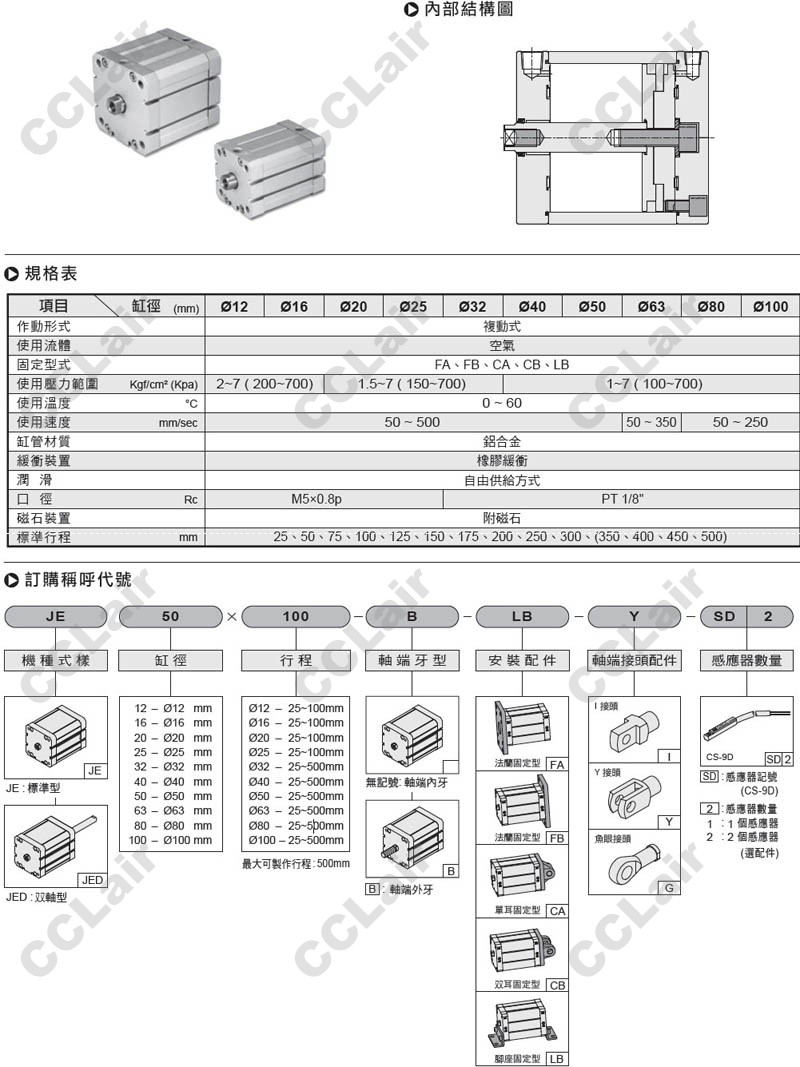 JE12*25-FA-Y-SD2,JE12*50-FA-Y-SD2,JE12*75-FA-Y-SD2,JE12*100-FA-Y-SD2,JE16*25-FA-Y-SD2,緊湊型氣缸