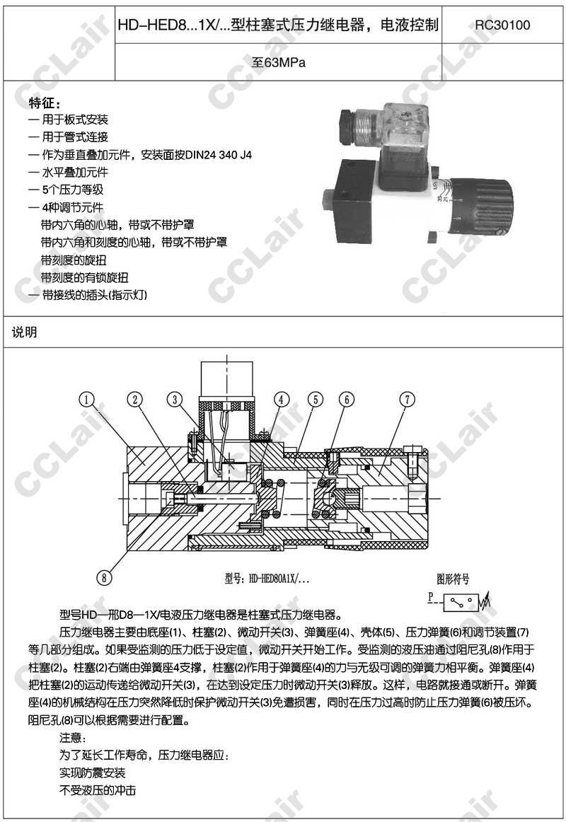 HED8OP,HED8OA,HED8OH,HED8OP1X/350K14S,HED8OA1X/100K14KW,huade柱塞式壓力繼電器
