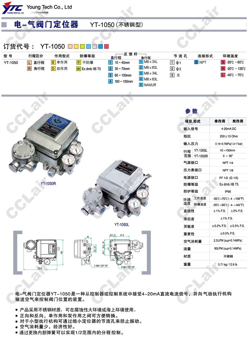 YT-1050R,YT-1050L,YTC電-氣閥門定位器