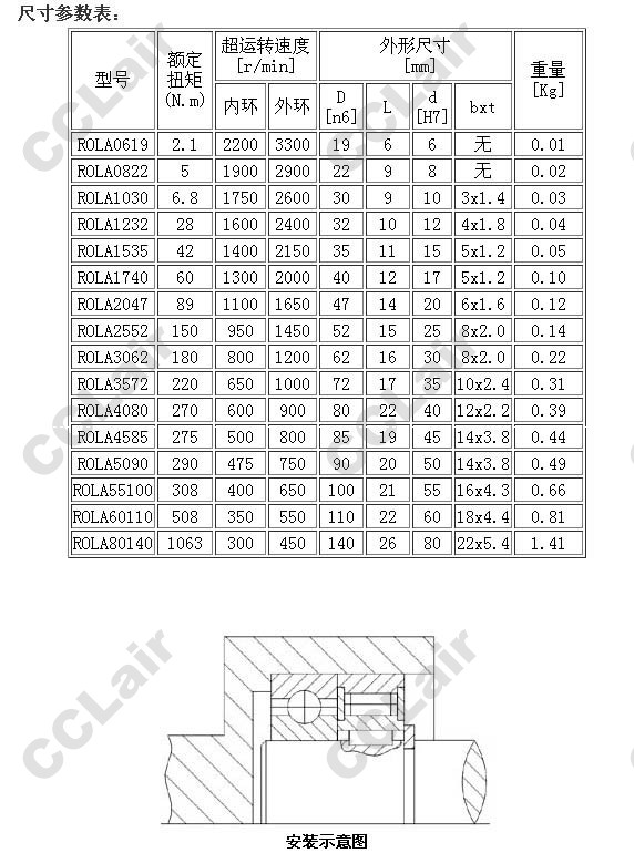 ROLA0619,ROLA0822,ROLA1030,ROLA1232,ROLA1535,ROLA1740,ROLA2047,ROLA2552,ROLA3572,滾柱式單向離合器