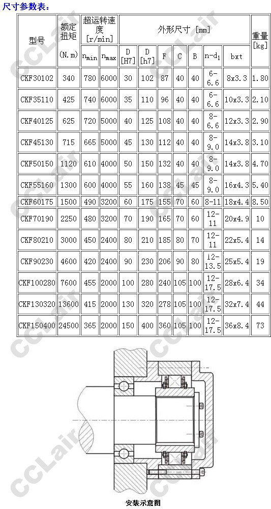 CKF30102,CKF351110,CKF40125,CKF45130,CKF50150,CKF55160,CKF60175,CKF70190,CKF80210,CKF90230,單向超越離合器 |